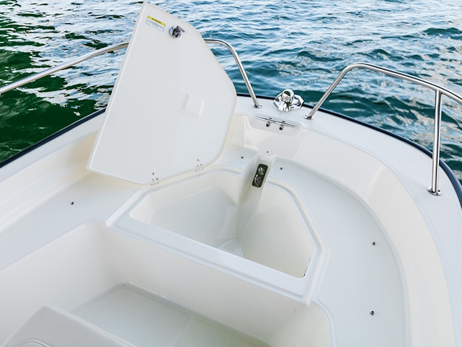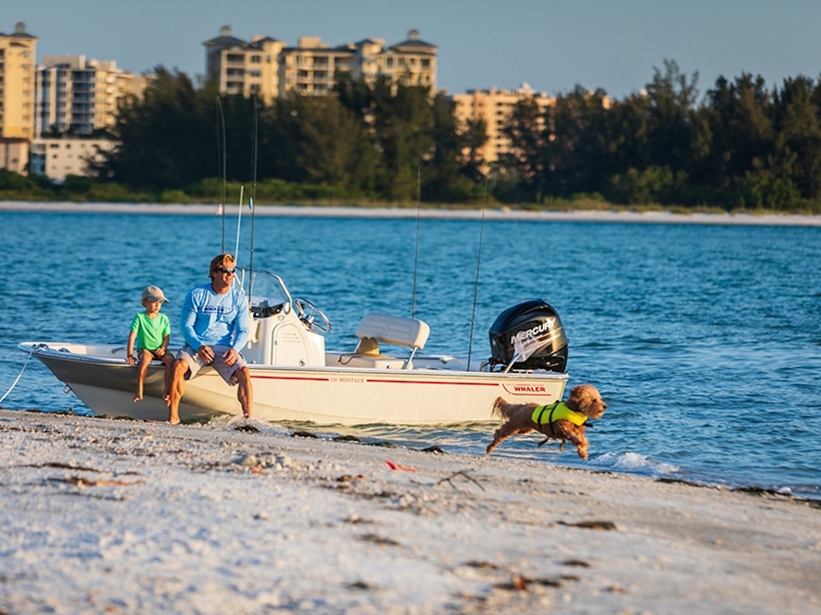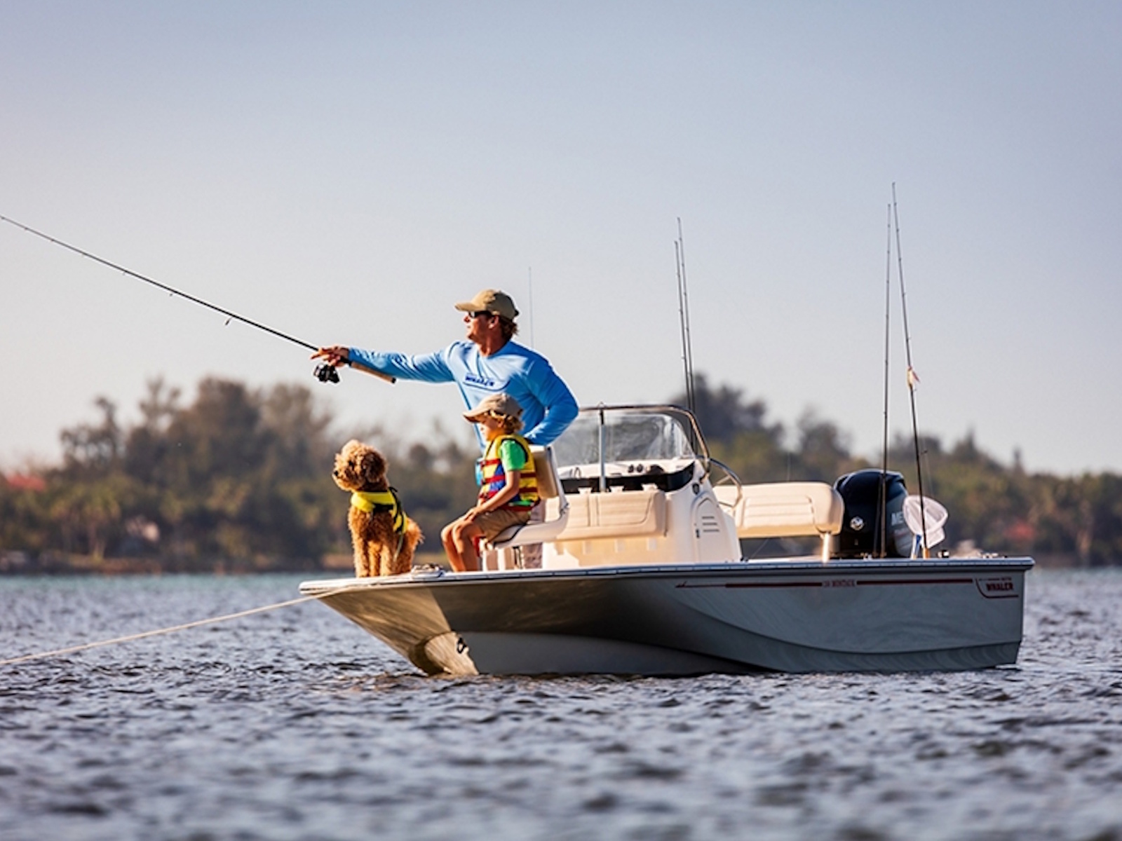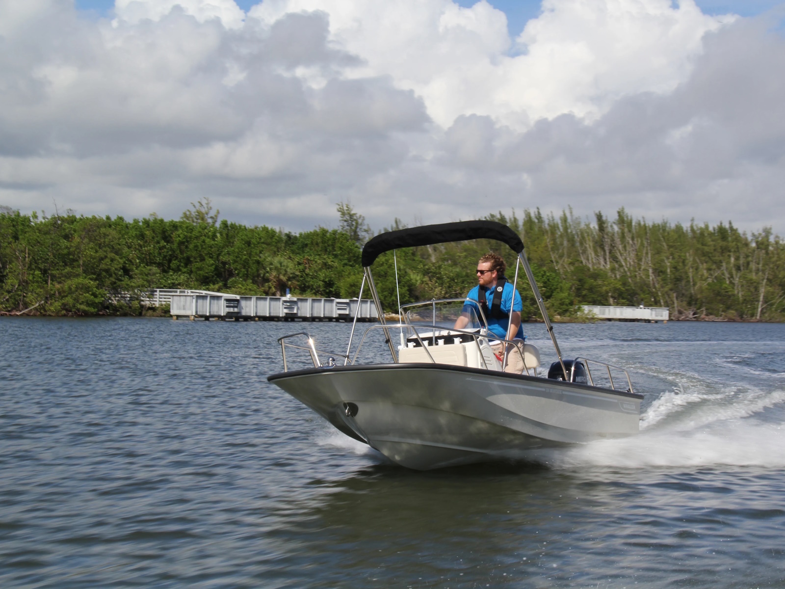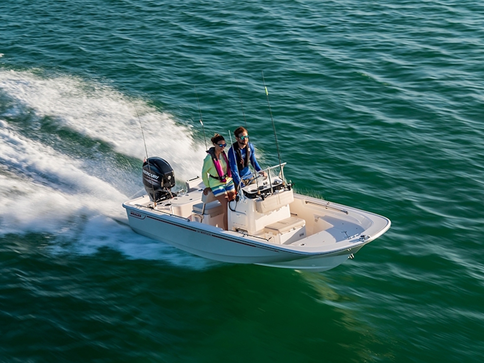The most compact member of the proven Montauk family is a durable, stylish, and versatile 15-foot center console boat that can easily take you from the canal to the bay to the beach. Traditional lines and Boston Whaler’s legendary unsinkable hull combine for a smooth, soft ride with up to 60 horses moving it briskly through the water. The roomy layout features a fiberglass leaning post, and an optional fishing package makes it a capable inshore angler. The Montauk 150 is truly a small wonder—as easy to operate as it is to own.