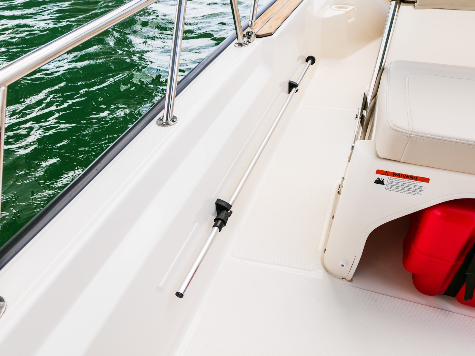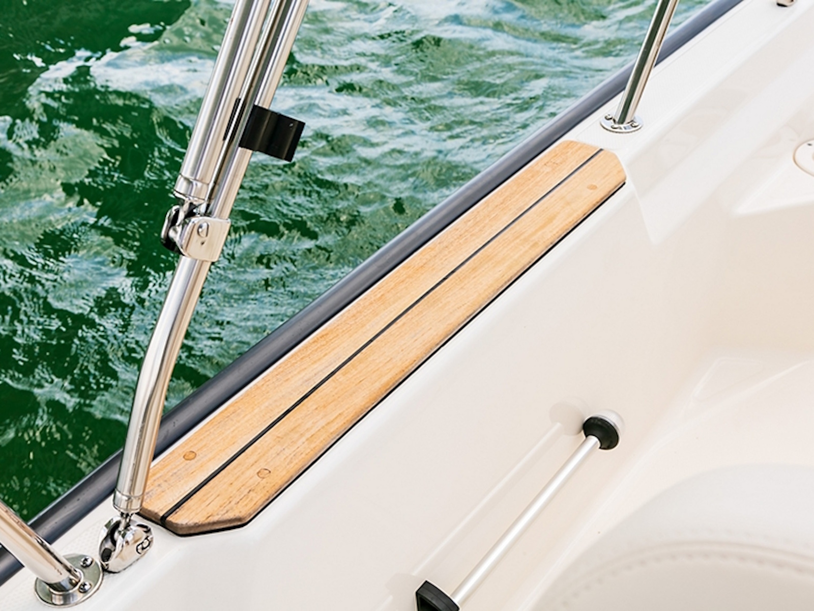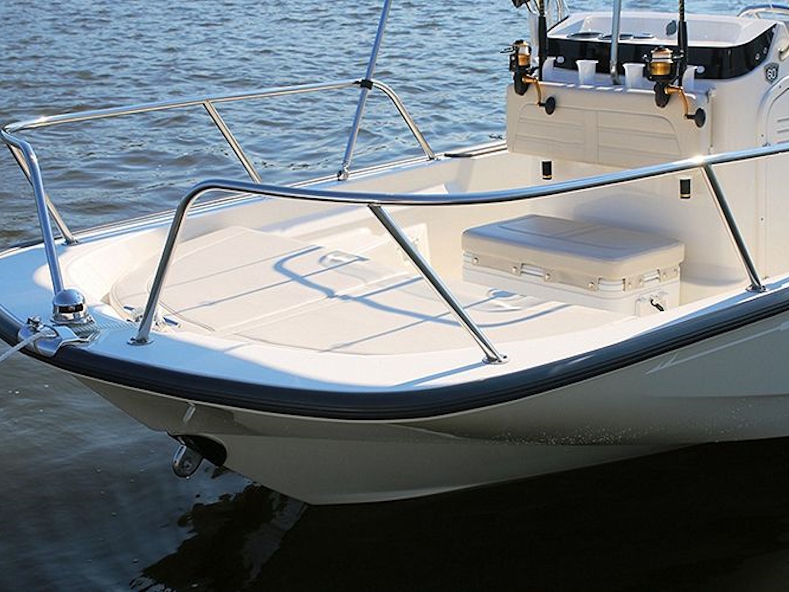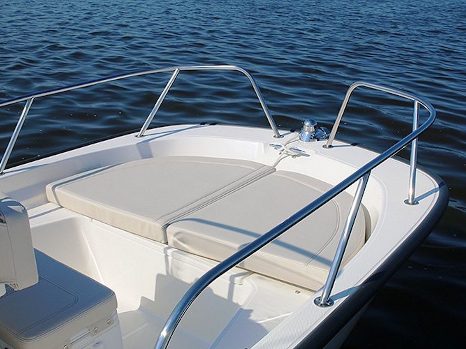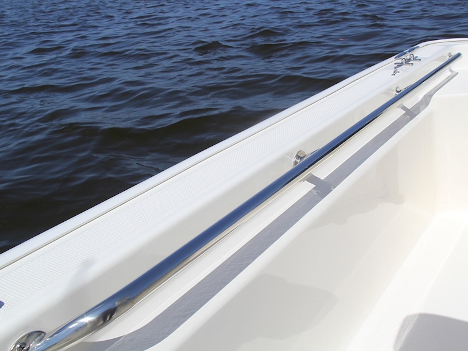 - Bow rail with high side rails (not compatible with trolling motor panel)