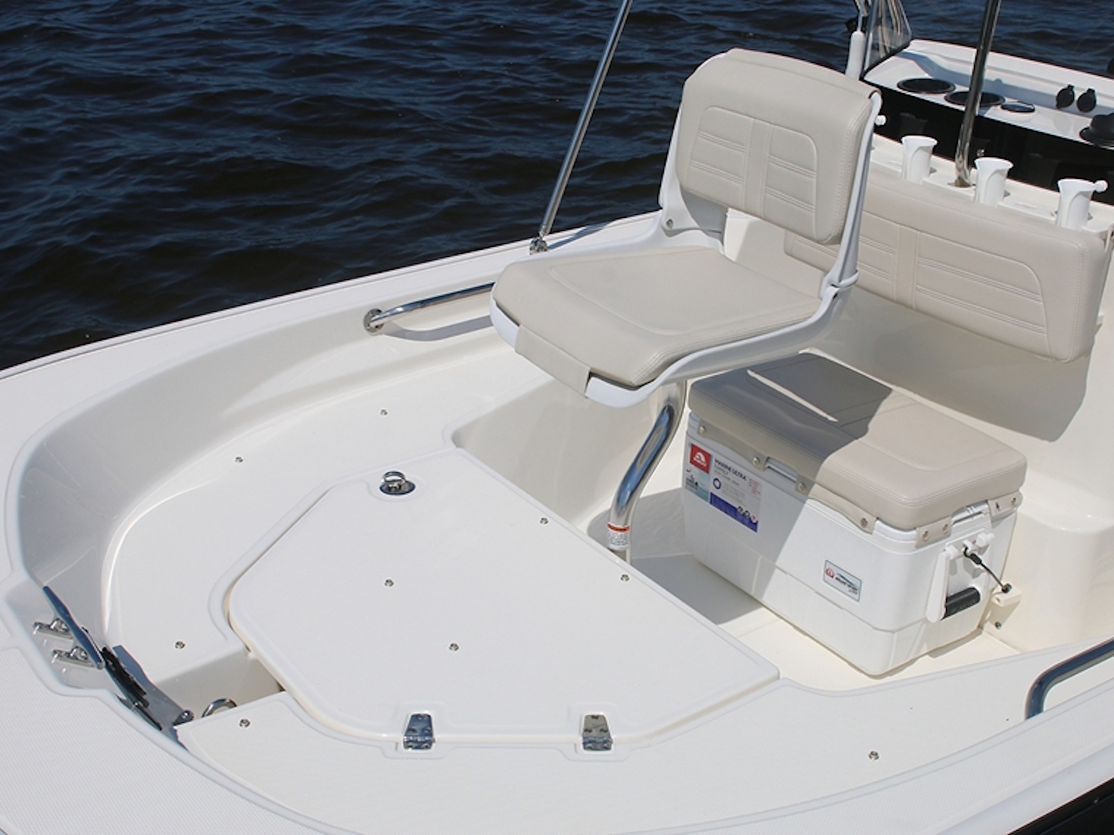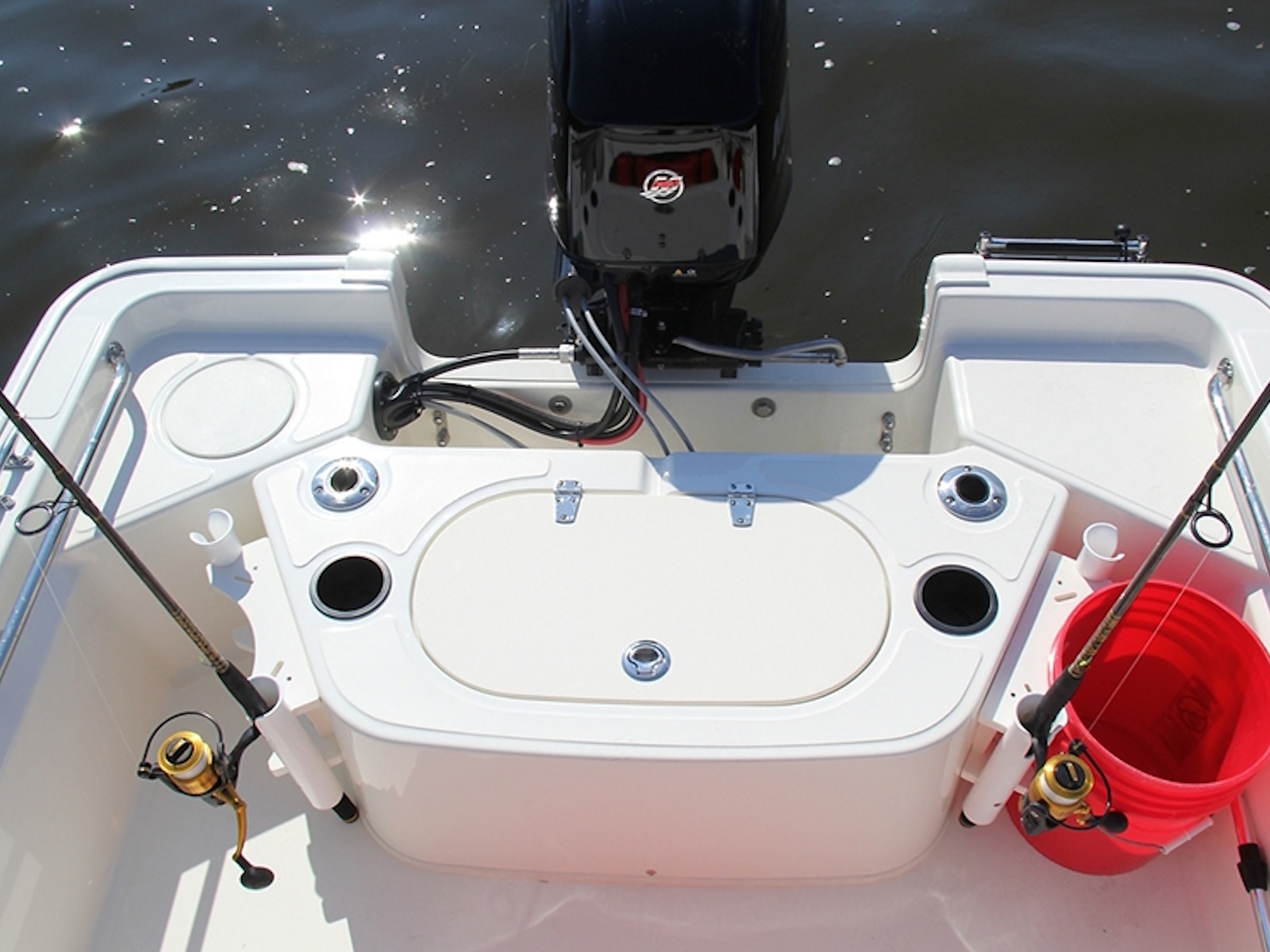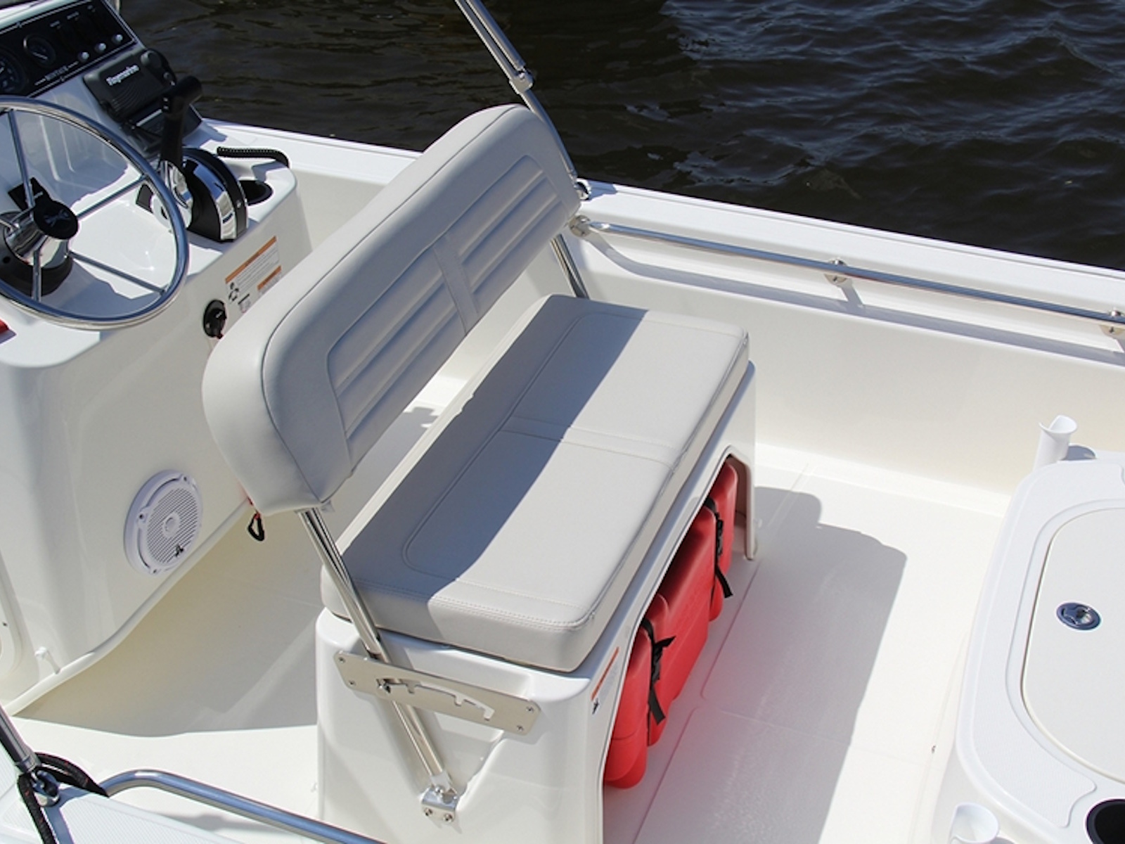 - Optional Fishing Package adds a 36-quart cooler seat, console-mounted rod holders, and tackle drawers.
