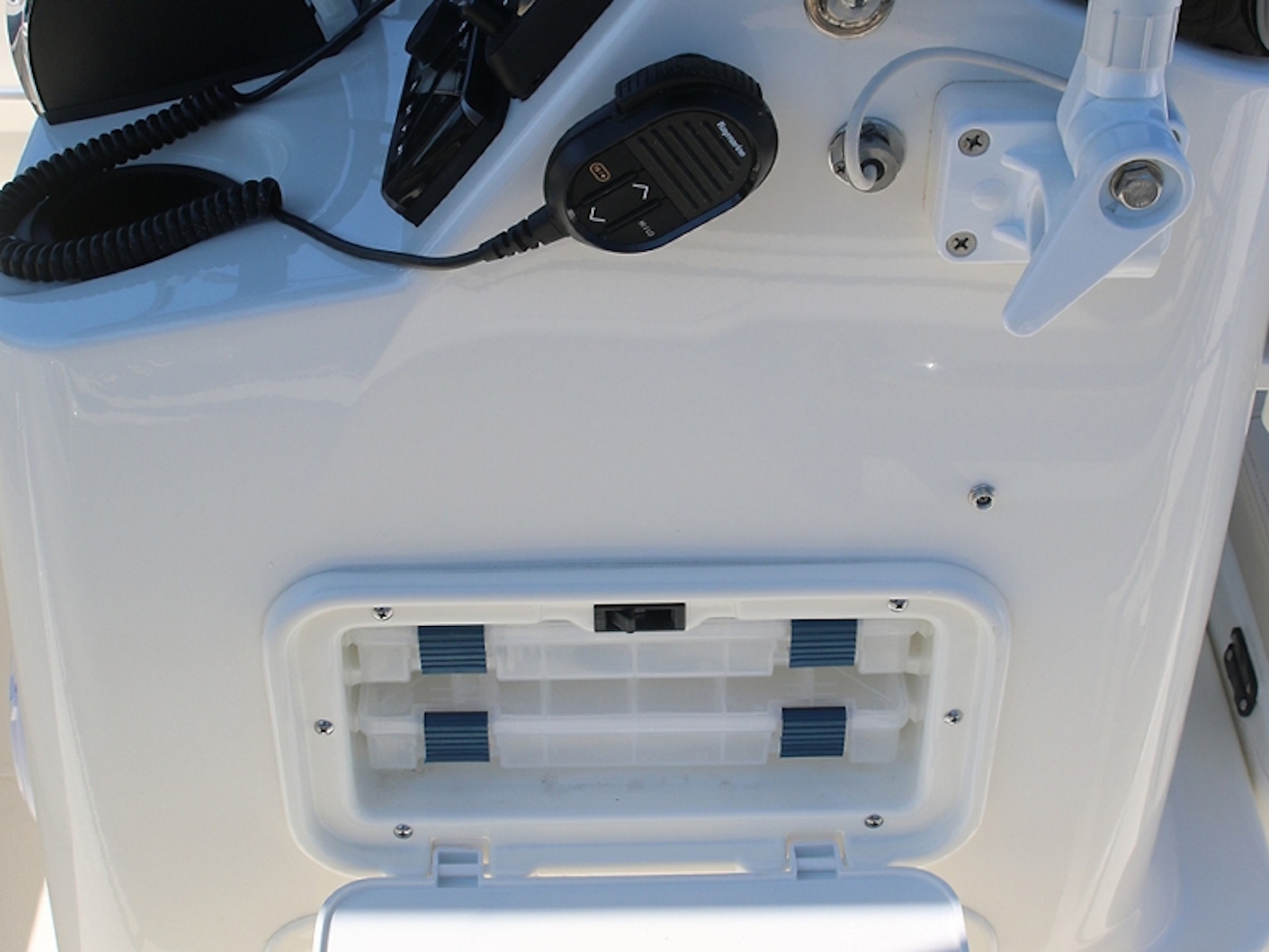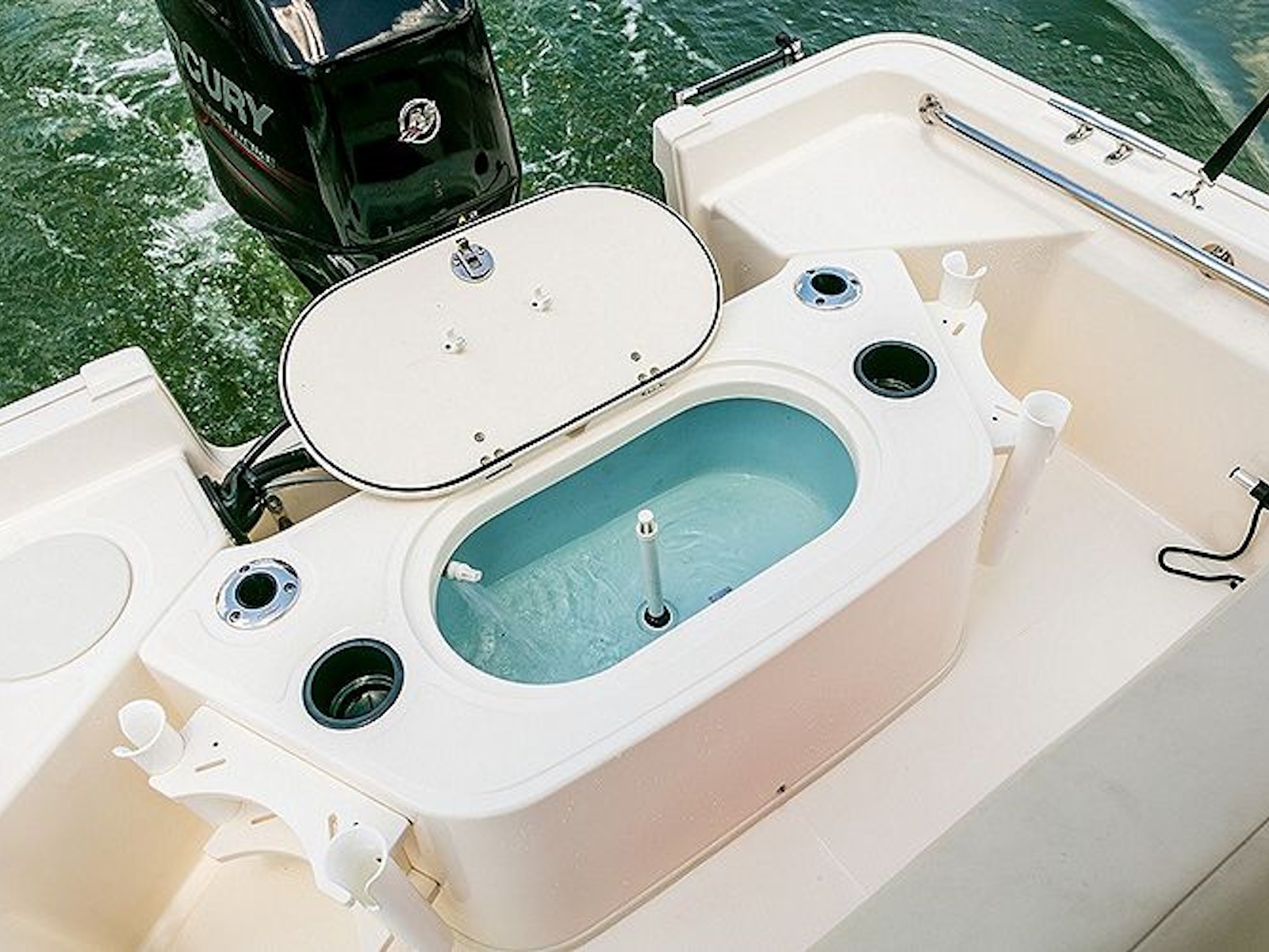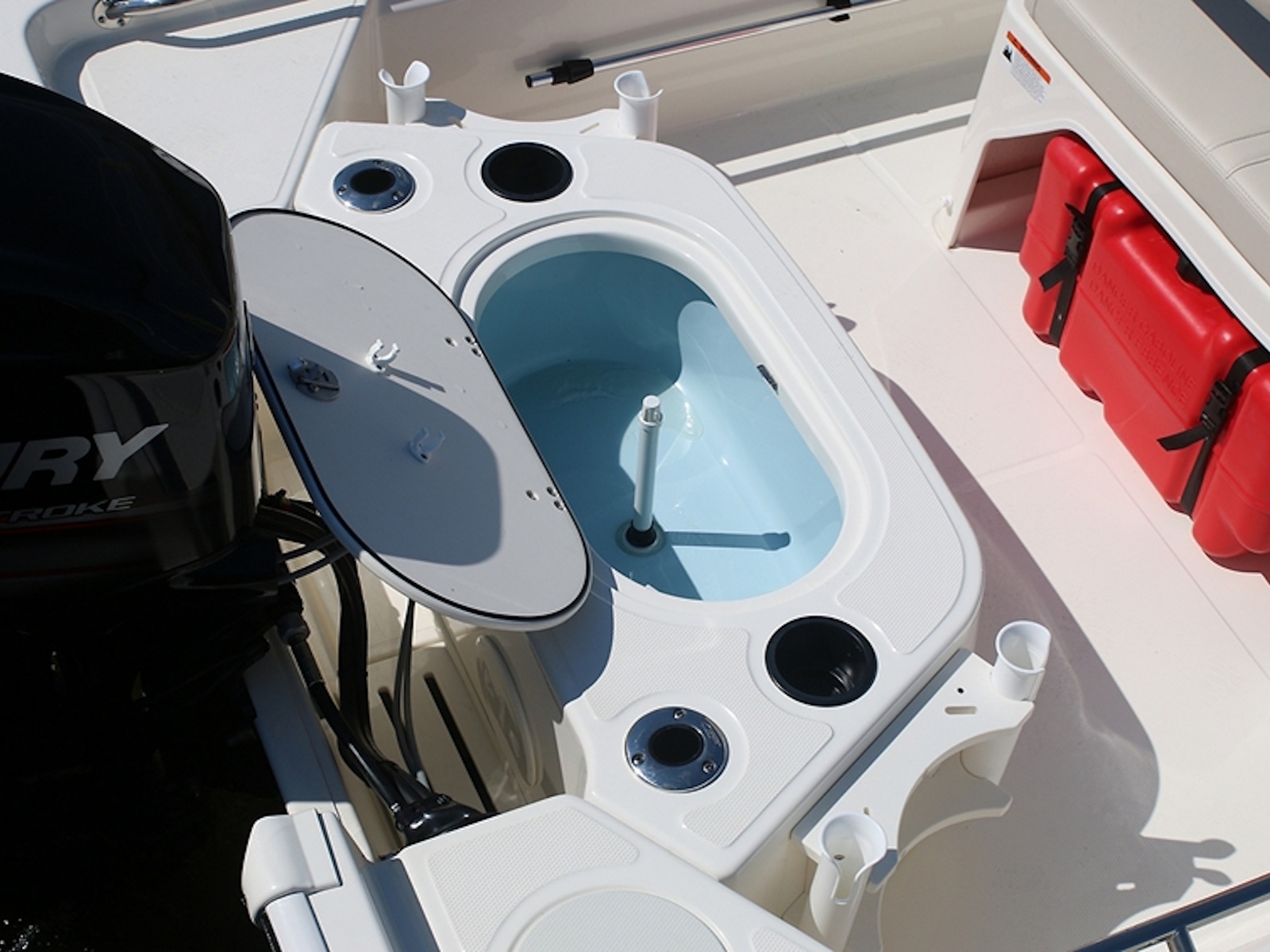 - Optional Fishing Package adds a 36-quart cooler seat, console-mounted rod holders, and tackle drawers.