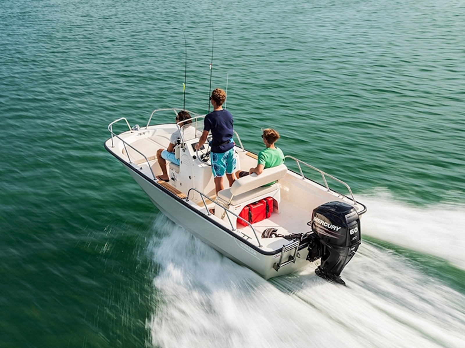 - Standard 60-hp Mercury® Command Thrust FourStroke engine provides reliable, efficient performance.