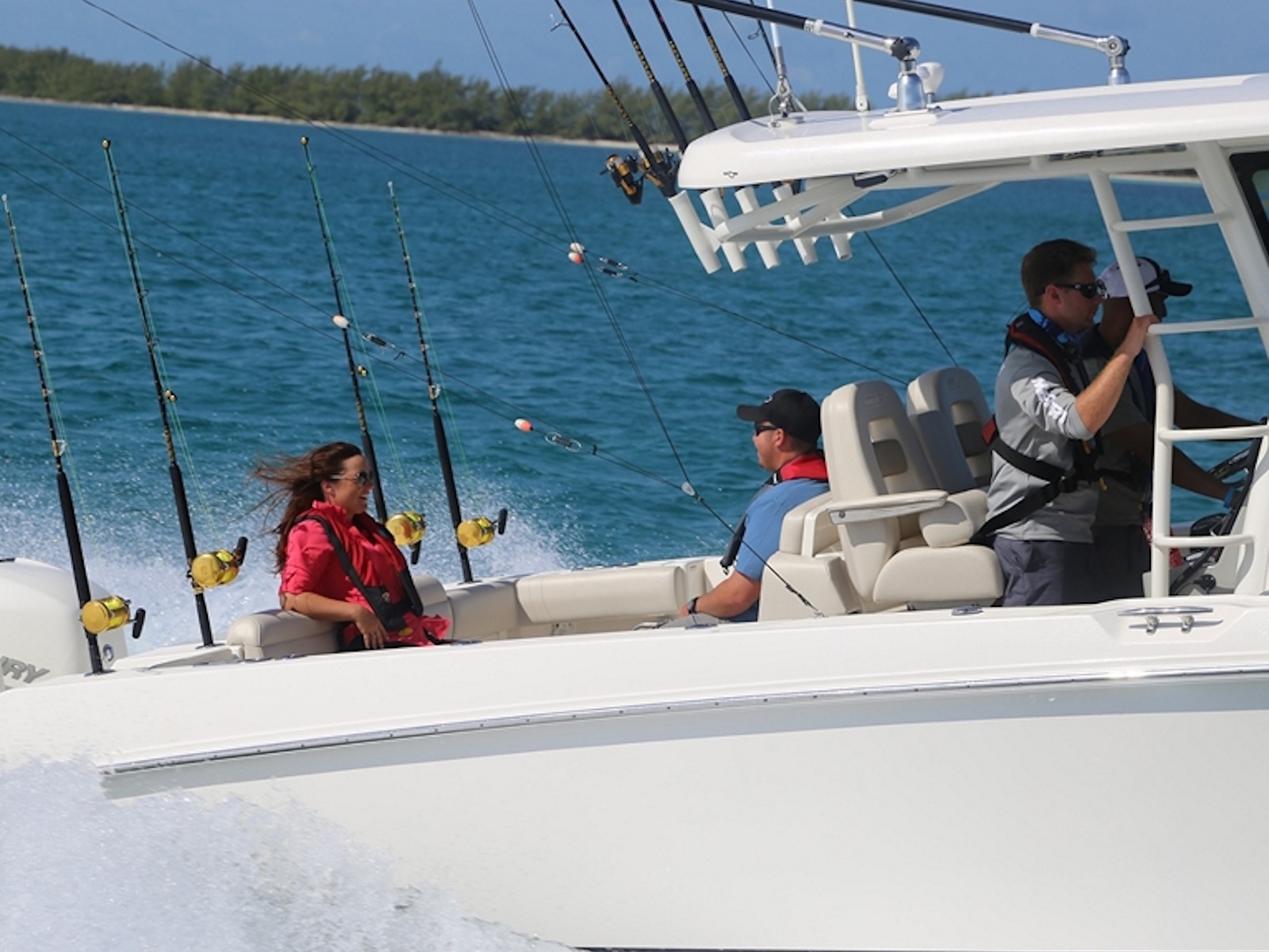 - Enjoy ample fish-fighting room in the cockpit, courtesy of a wide beam and fold-away aft bench