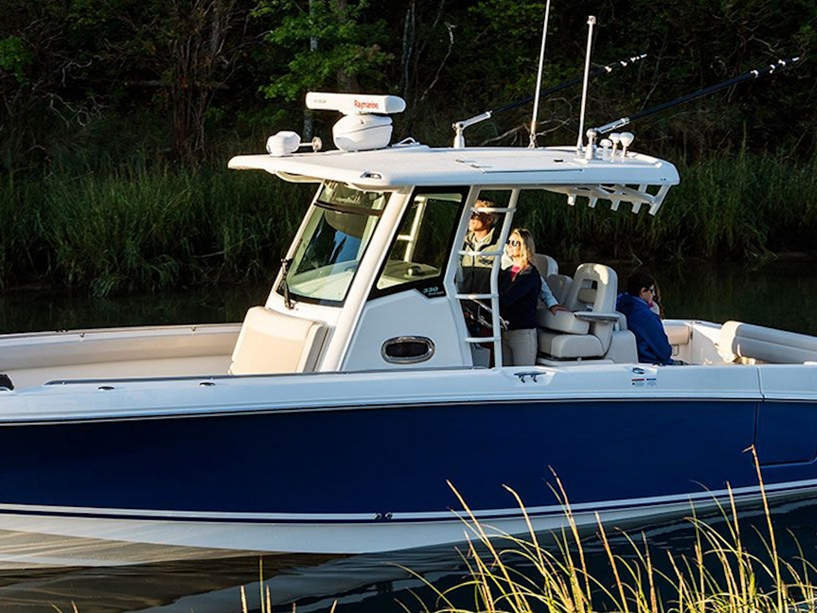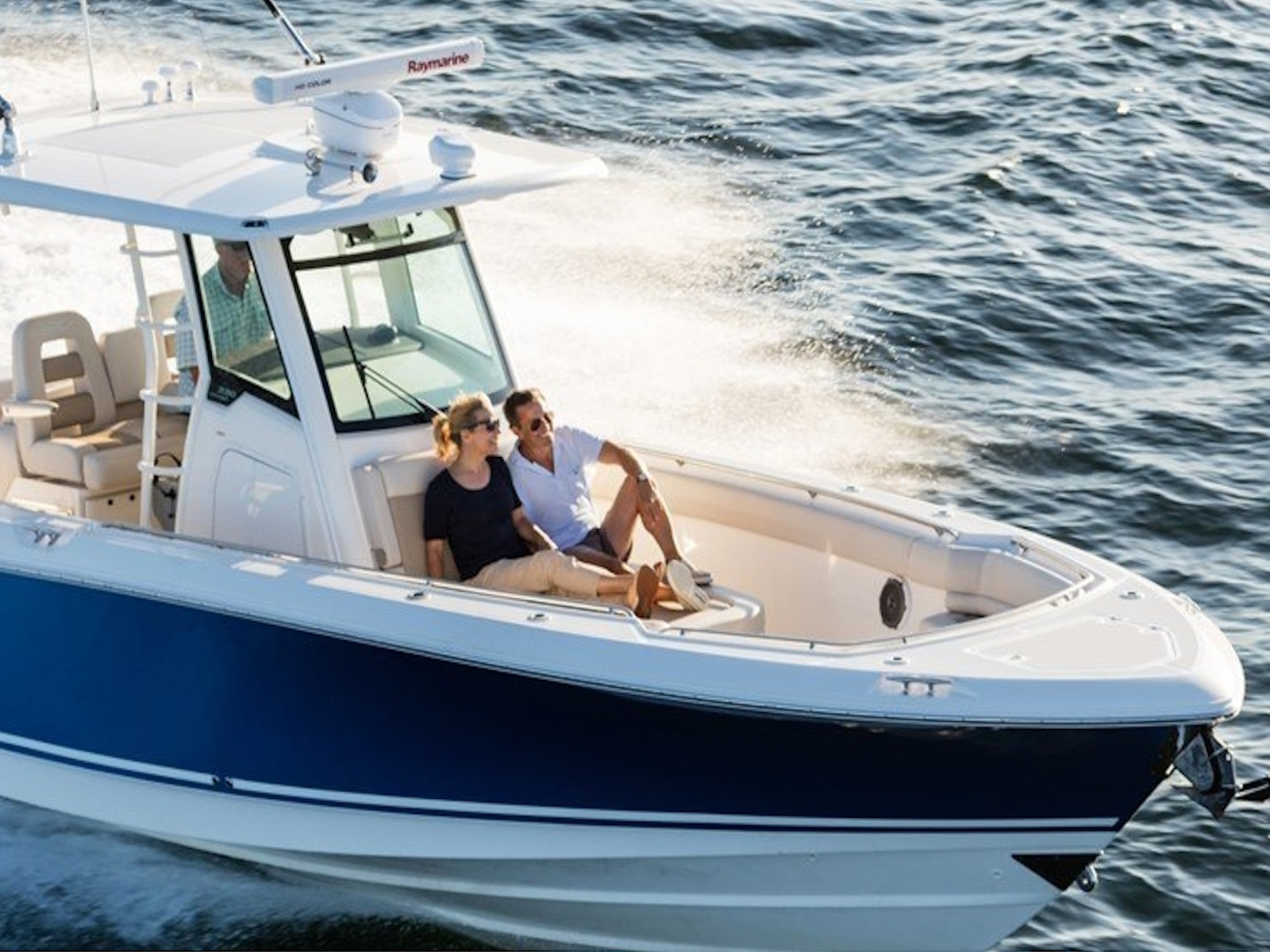 - Smart bow seating, a convenient dive door and optional bow and aft sunshades empower great entertaining
