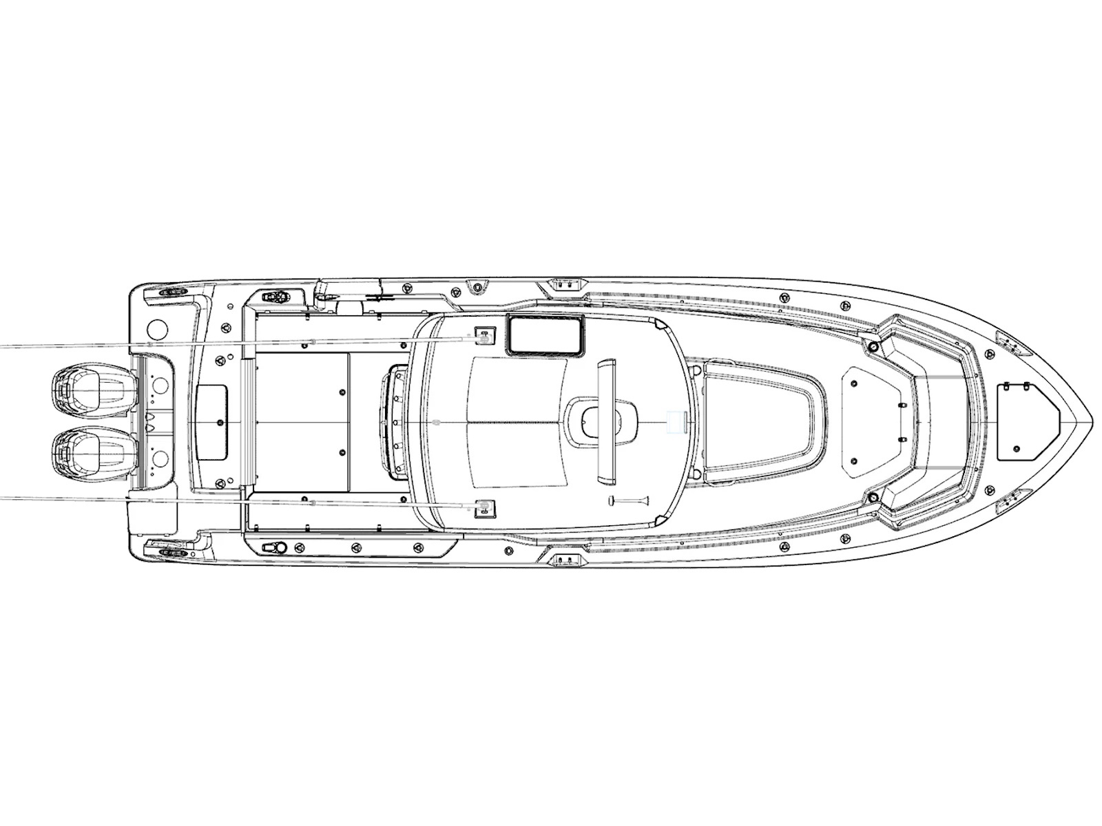 - Automatic bilge pump and sump box (1,100 GPH forward, 2,000 GPH aft (2))