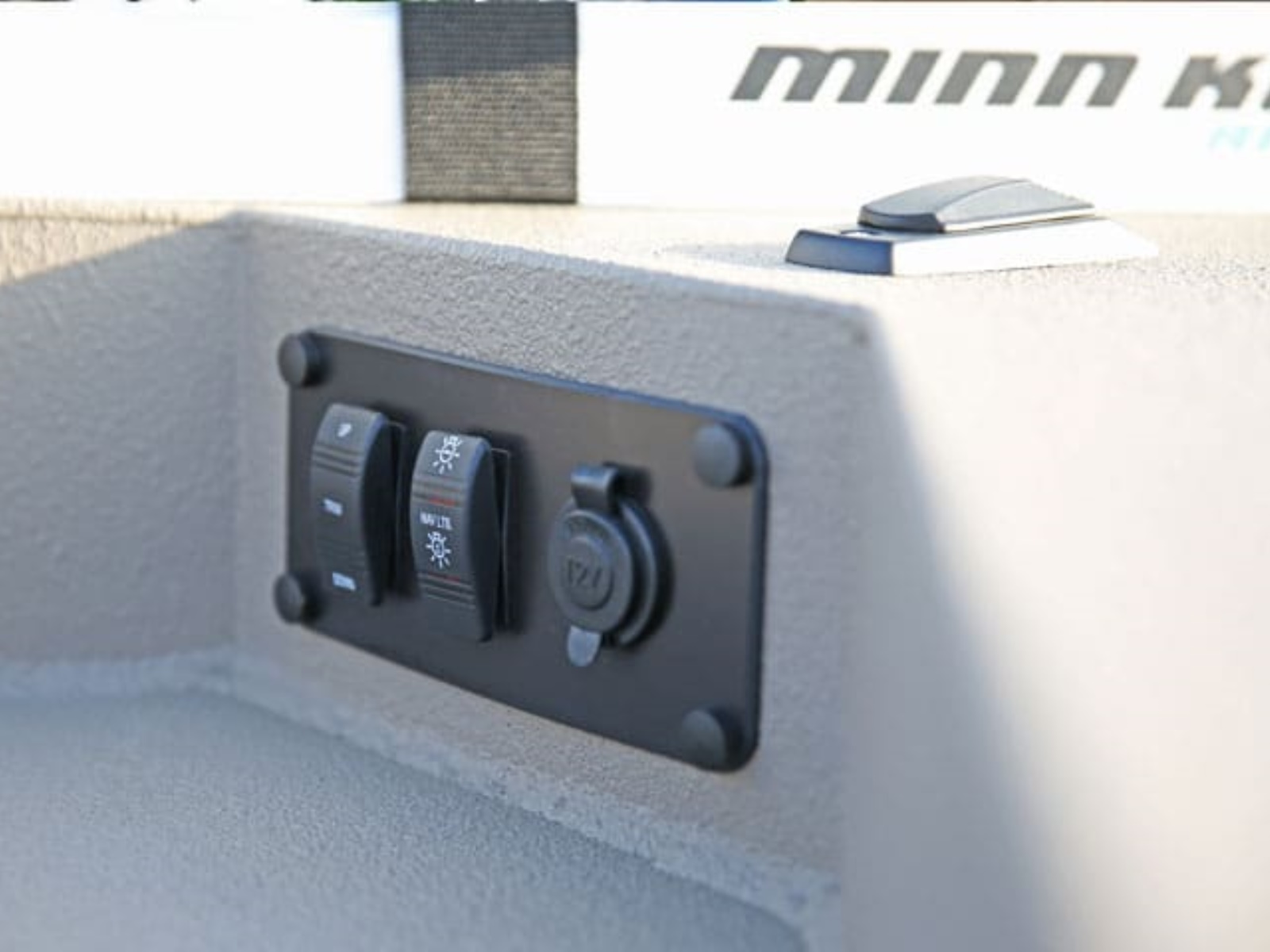 - Front Deck Control Panel (12V Plug, Troll Motor Plug, Nav Light and Motor Trim Switches)