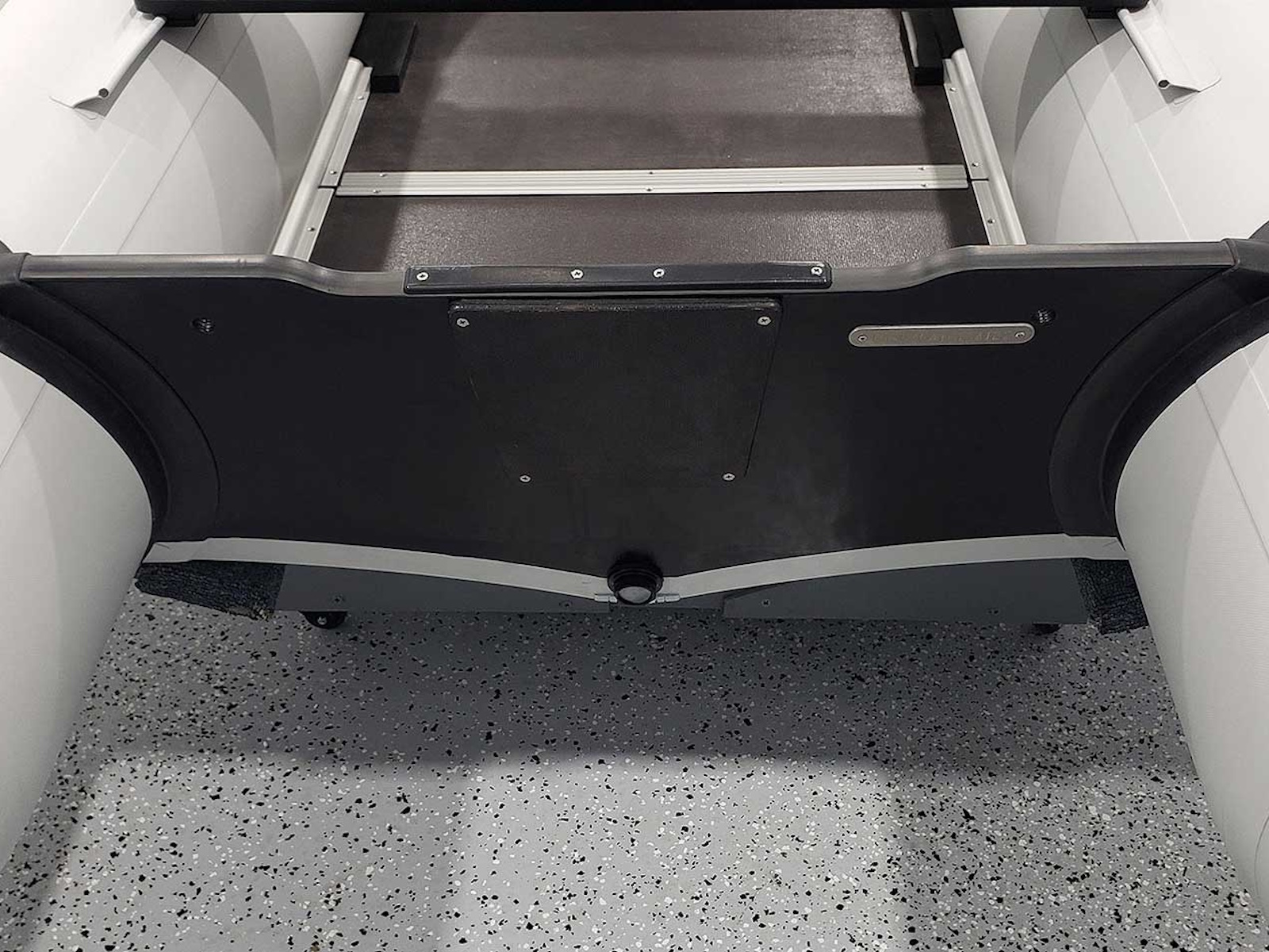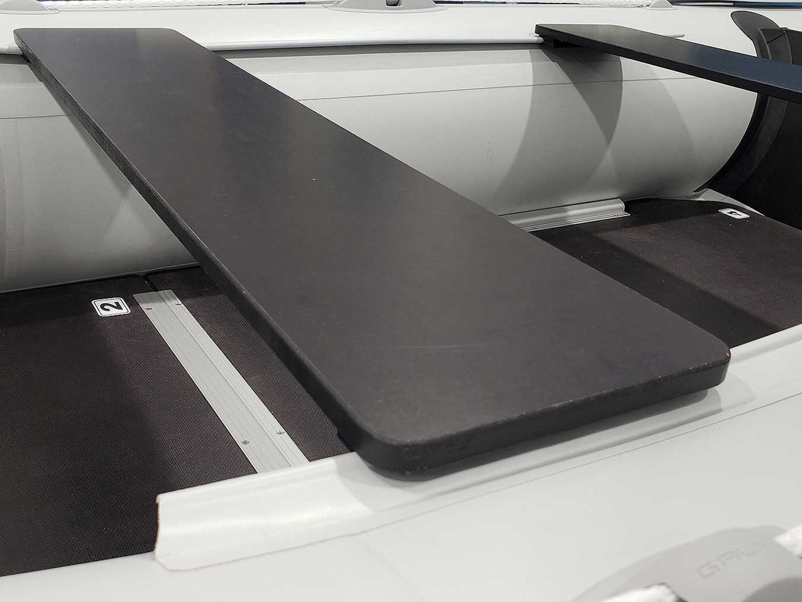 There are 5 models ranging from 8 ft. to 12 ft. long, each taking around 15 minutes to assemble, and are easy to store. Flooring with laminated plywood floorboards and aluminum reinforcement beams  is simple to use, requires no maintenance, and is comfortably stable for all on board. Nice seating with a sliding installation system allow for the opportunity to rearrange the cockpit space in seconds, no matter if you are on the water, deck, or davits!