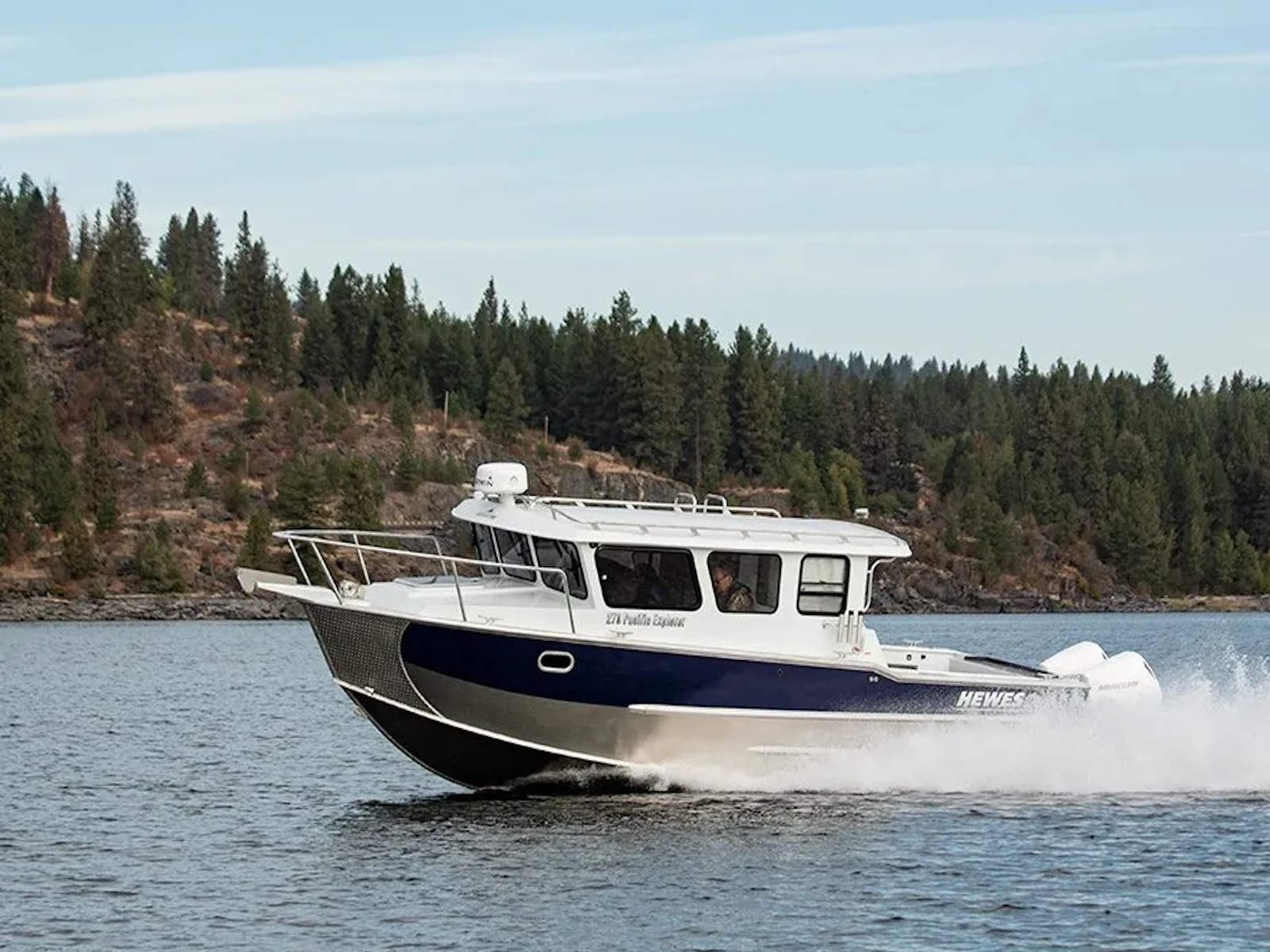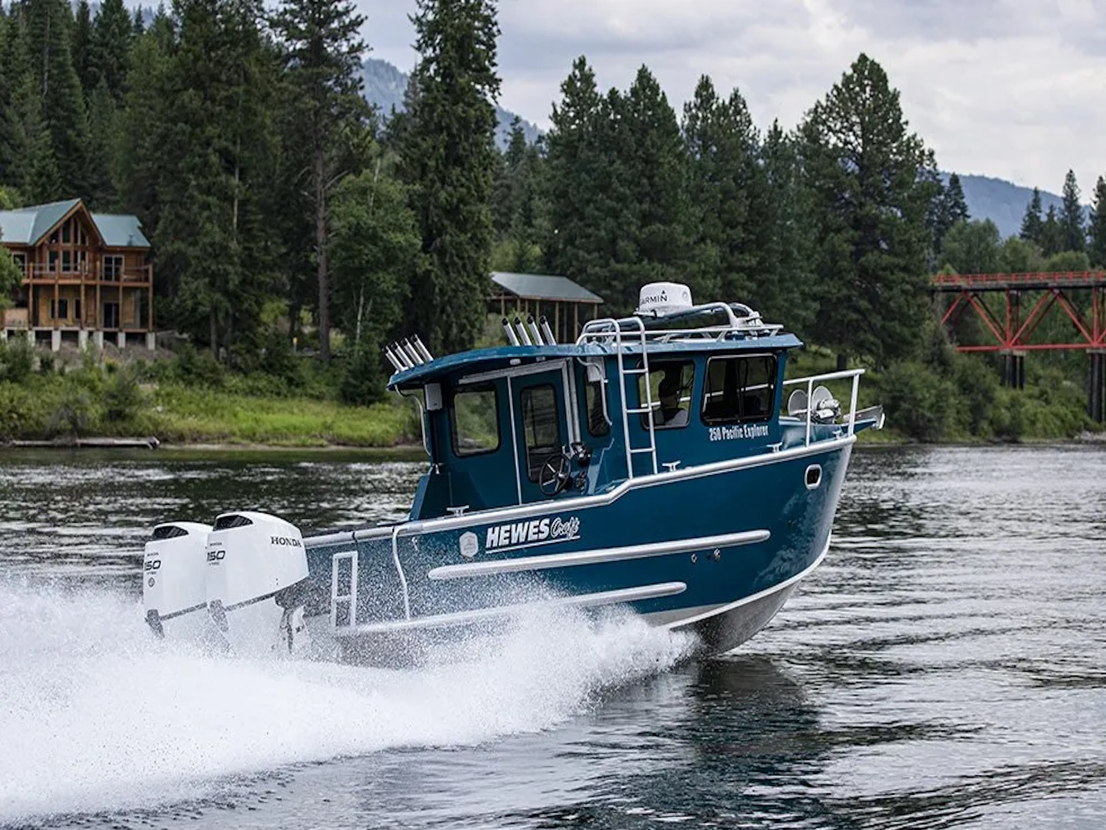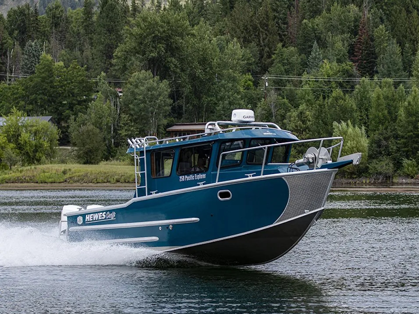 The Pacific Explorer is based on our offshore-tough, 8’-wide Alaskan hull with many added conveniences for extended stays on the water. Although we have added more class and comfort to the Pacific Explorer, it is still built with fishing in mind and it does not sacrifice any of the rugged, fishing-first tradition upon which Hewescraft was founded.
