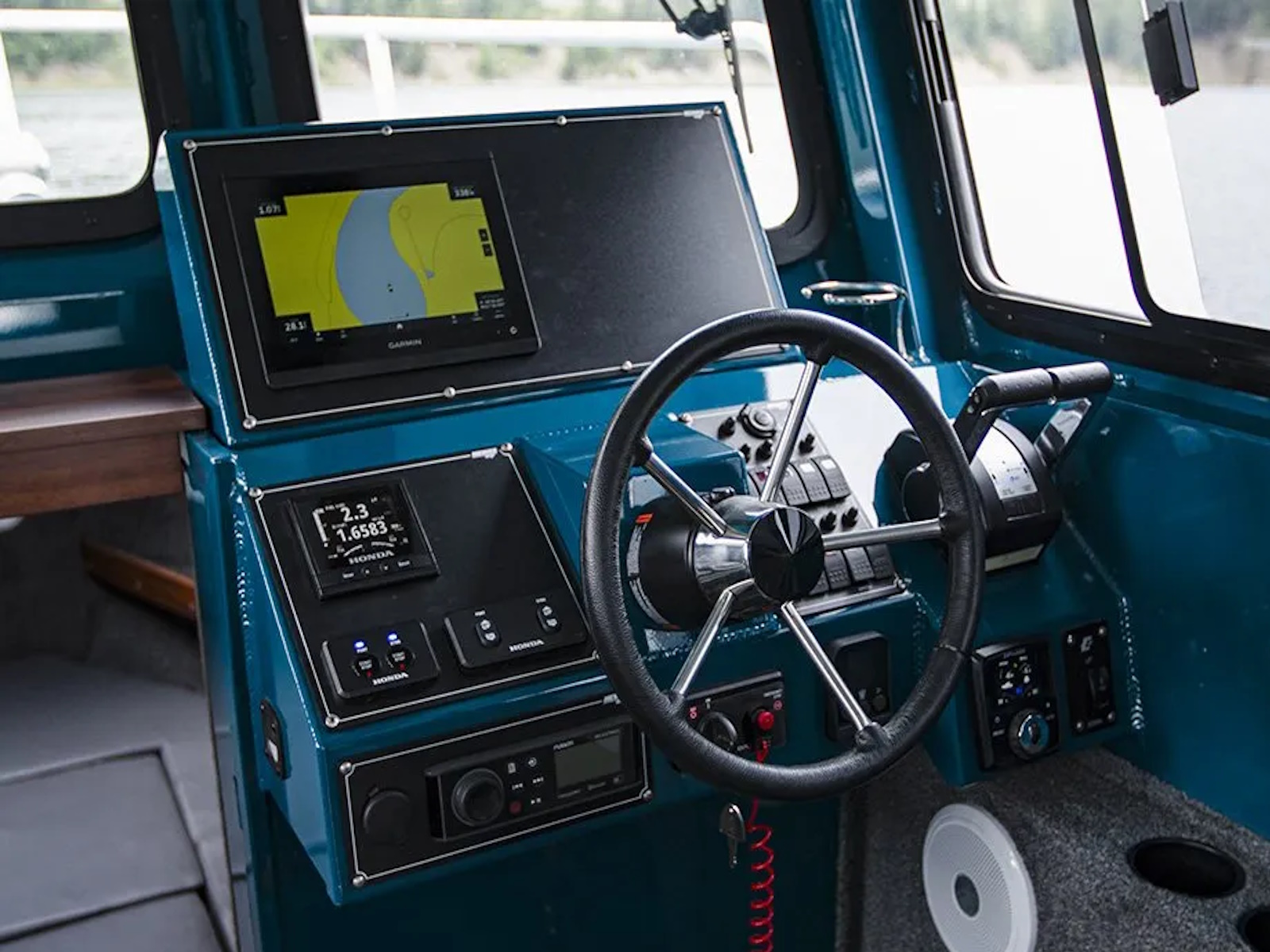 So, what’ll it be? A fishing-focused, easy-to-clean, roomy, functional, self-bailing fishing cockpit? Or, a large, comfortable, full-featured cabin, and sleeping quarters? You don’t need to choose one or the other — the Hewescraft Pacific Explorer has all these essentials covered. There is no need to compromise comfort for a genuine fishing machine. The Pacific Explorer’s comfortable cabin featuring a heated v-berth, flush toilet in a private head closet, mahogany galley with cooktop, sink, and refrigerator have all been paired with 50 square feet of self-bailing cockpit space that’s easy to work in, and easy to clean. The Hewescraft Pacific Explorer combines all your fishing, and your boating comfort essentials.