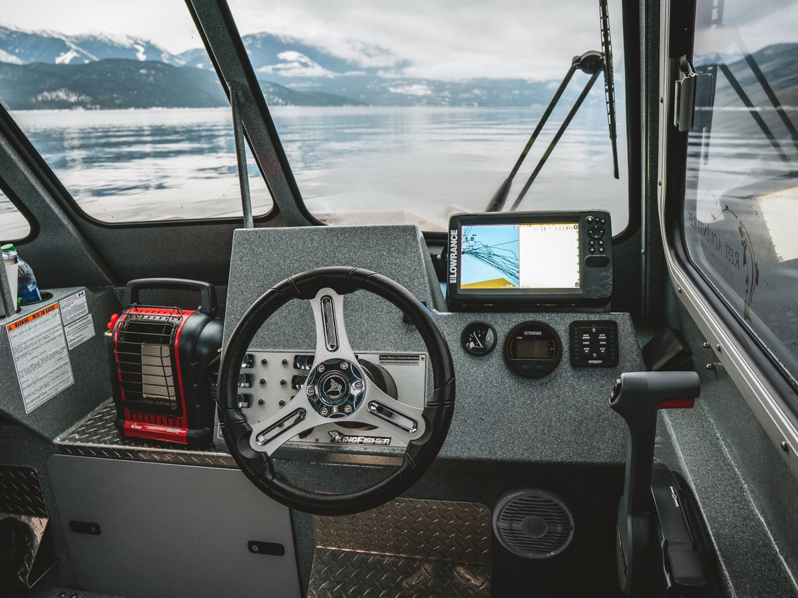 - Aft sloping windshield with tempered glass front windows and 2 aluminum framed sliding side windows