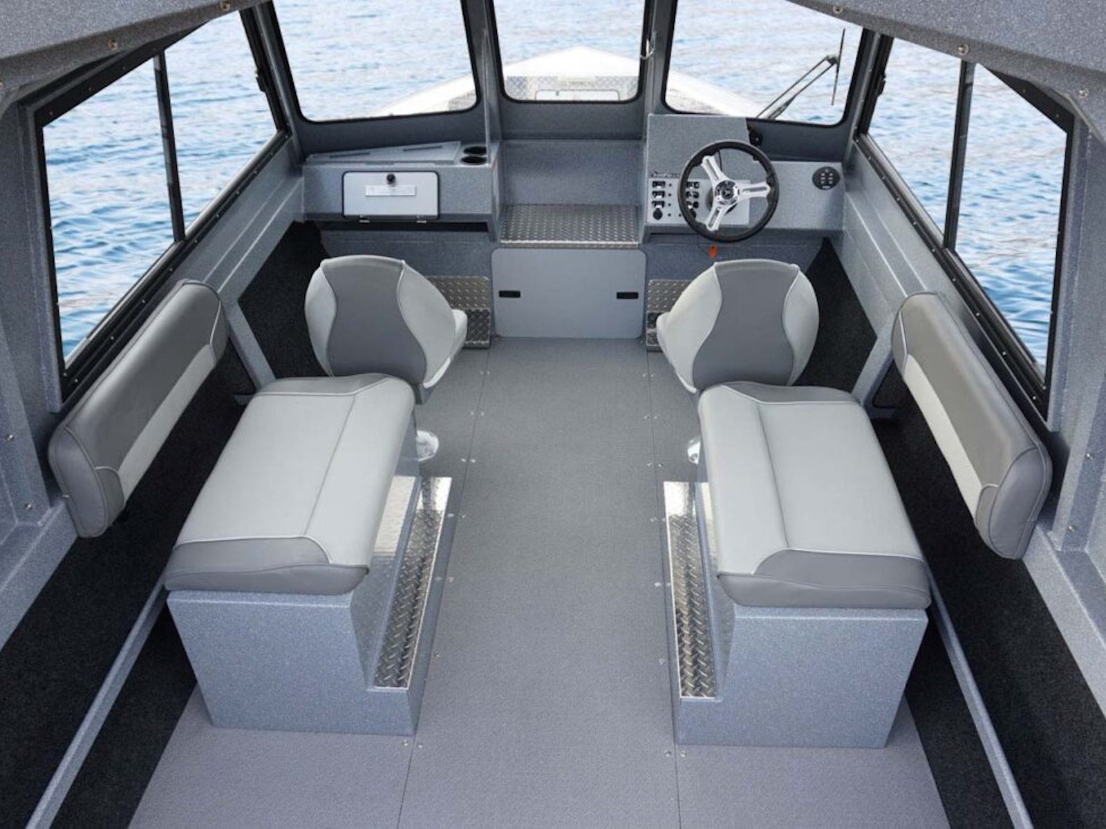- 2 Fishmaster XL seats with pinchless hinges on permanent pedestals