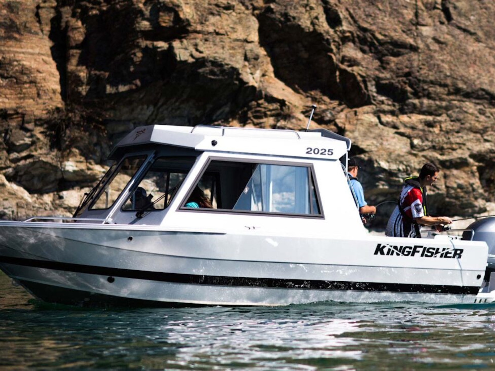 - Single piece hull sides with upswept bow and wide formed gunnels