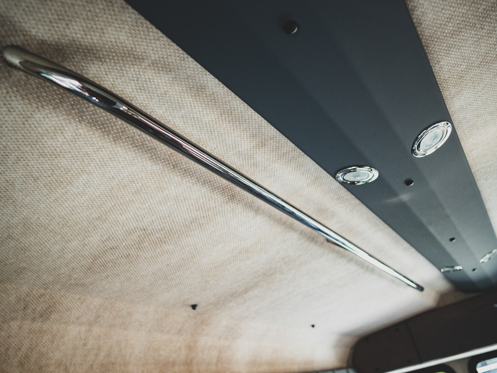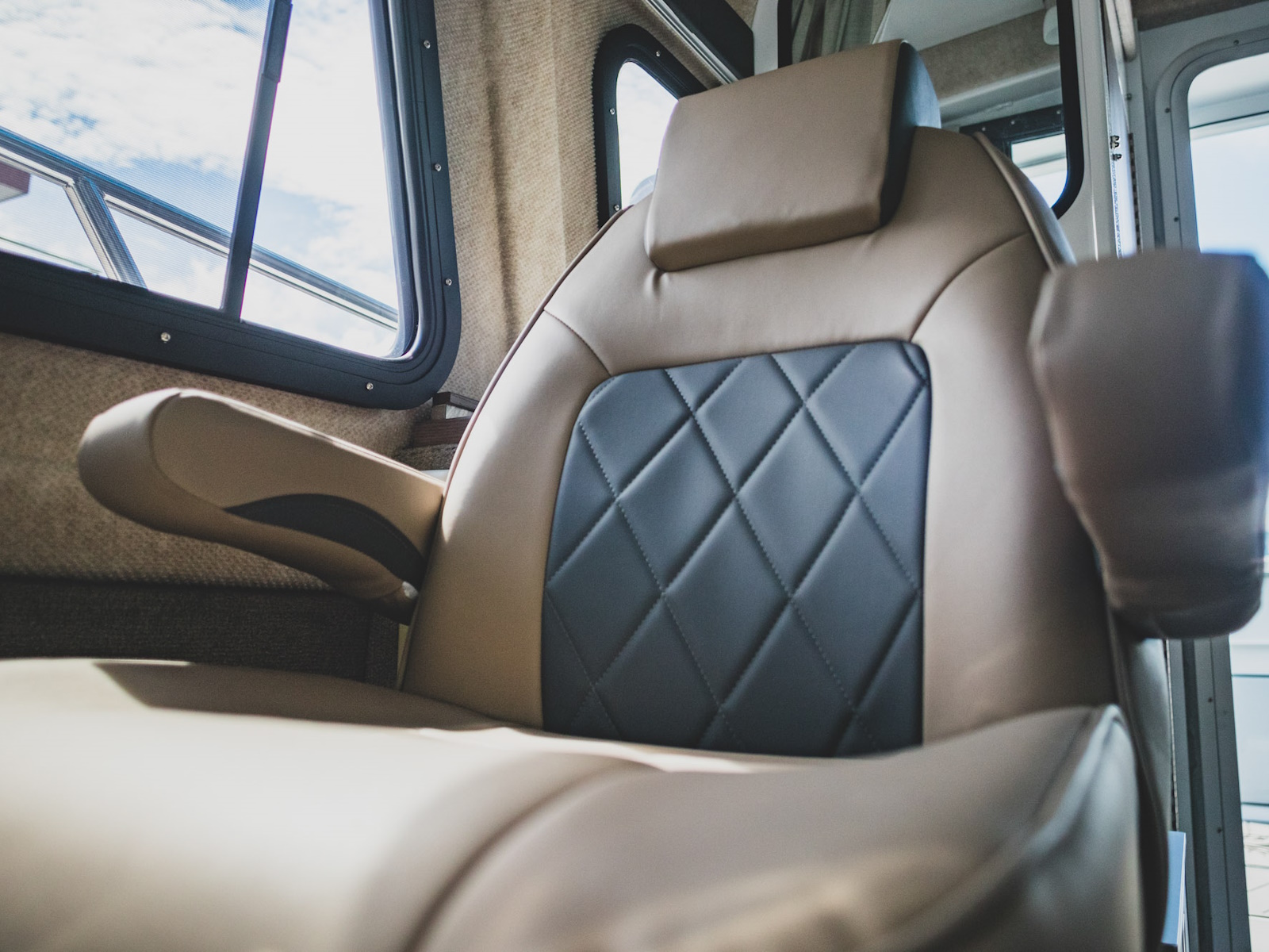 - Tan upholstery coverings with accents