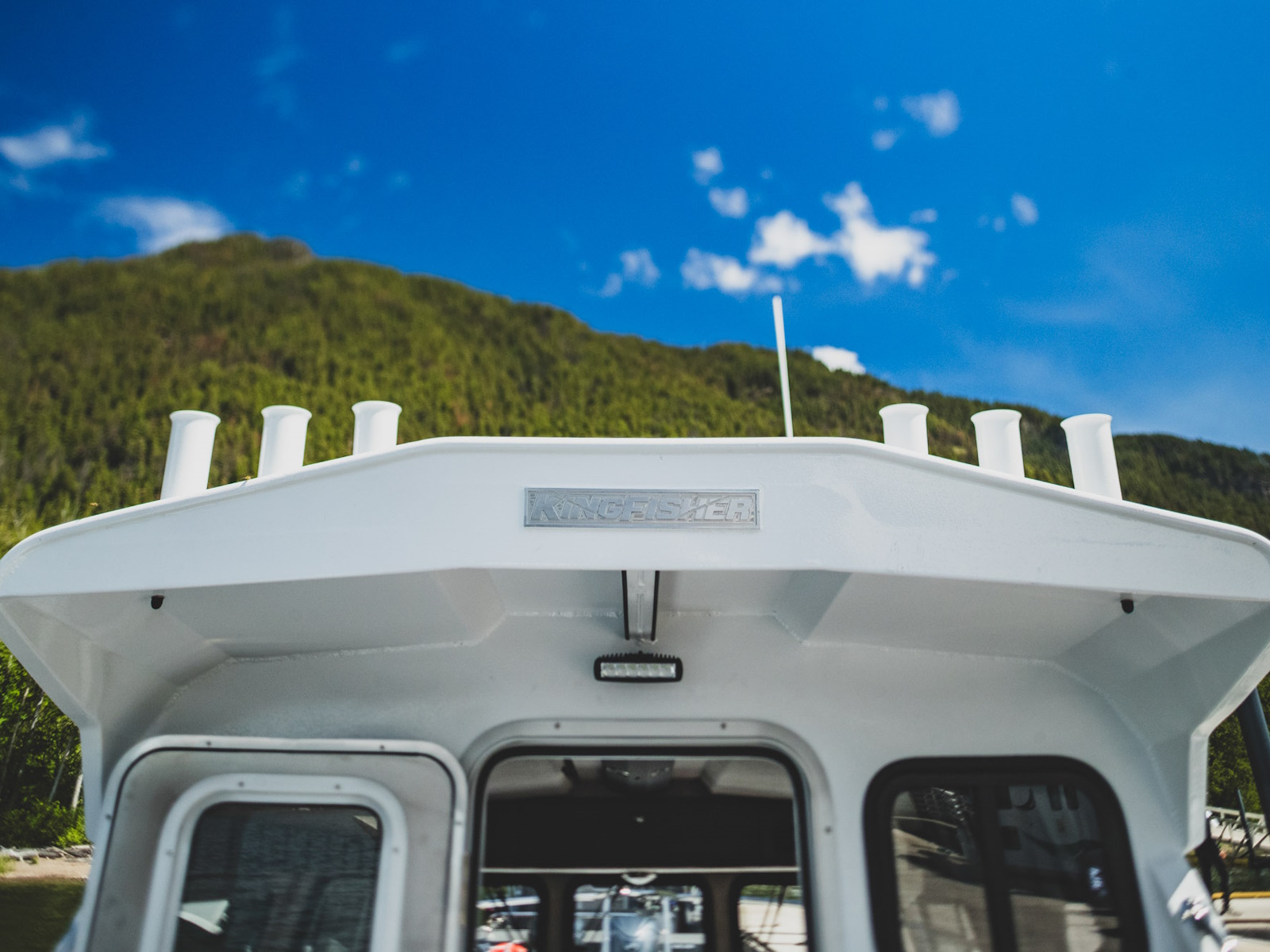- Forward sloping windshield with 3 aluminum framed safety glass windows Aluminum framed side sliding windows w/screen
