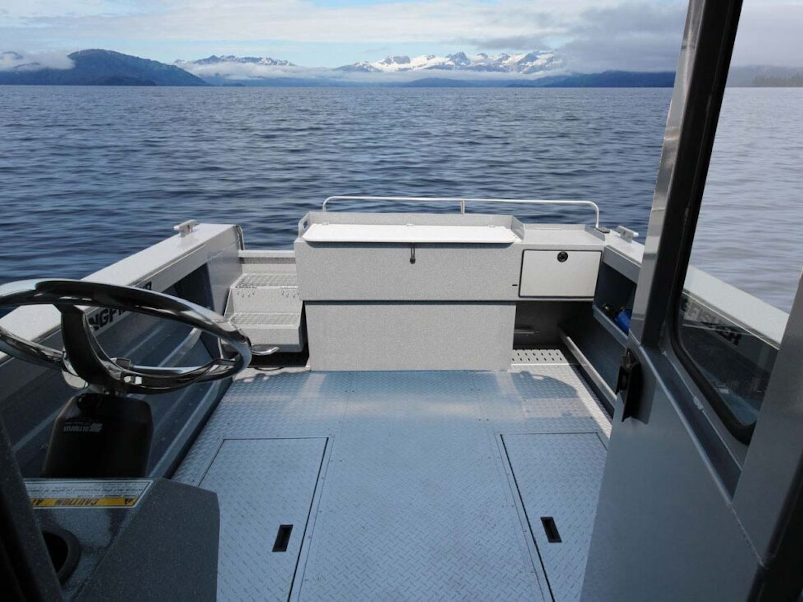 - Transom fish locker with cutting board and fish rail