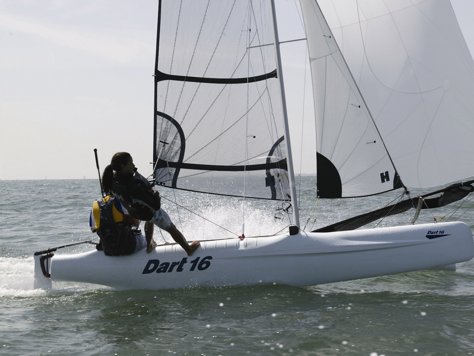 One-design sailing catamaran. The Dart 16 provides exciting performance for kids, youth, and adults alike! With better manoeuvrability than many larger catamarans thanks to a unique hull shape, the Dart 16 has a responsiveness like that found on a racing dinghy yet remains exceptionally stable and forgiving. Fun to teach on and featuring a simple robust construction, it’s no wonder the Dart 16 is the best-selling catamaran!