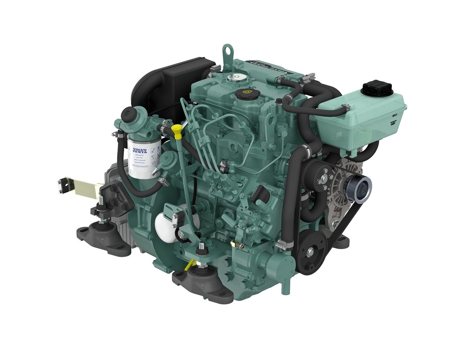 Volvo Penta D1 is an in-line 2-cylinder, naturally aspirated diesel engine using a camdriven, in-line injection pump, and freshwater cooling. With low cruising rpm, the engine runs quietly with minimal vibrations.