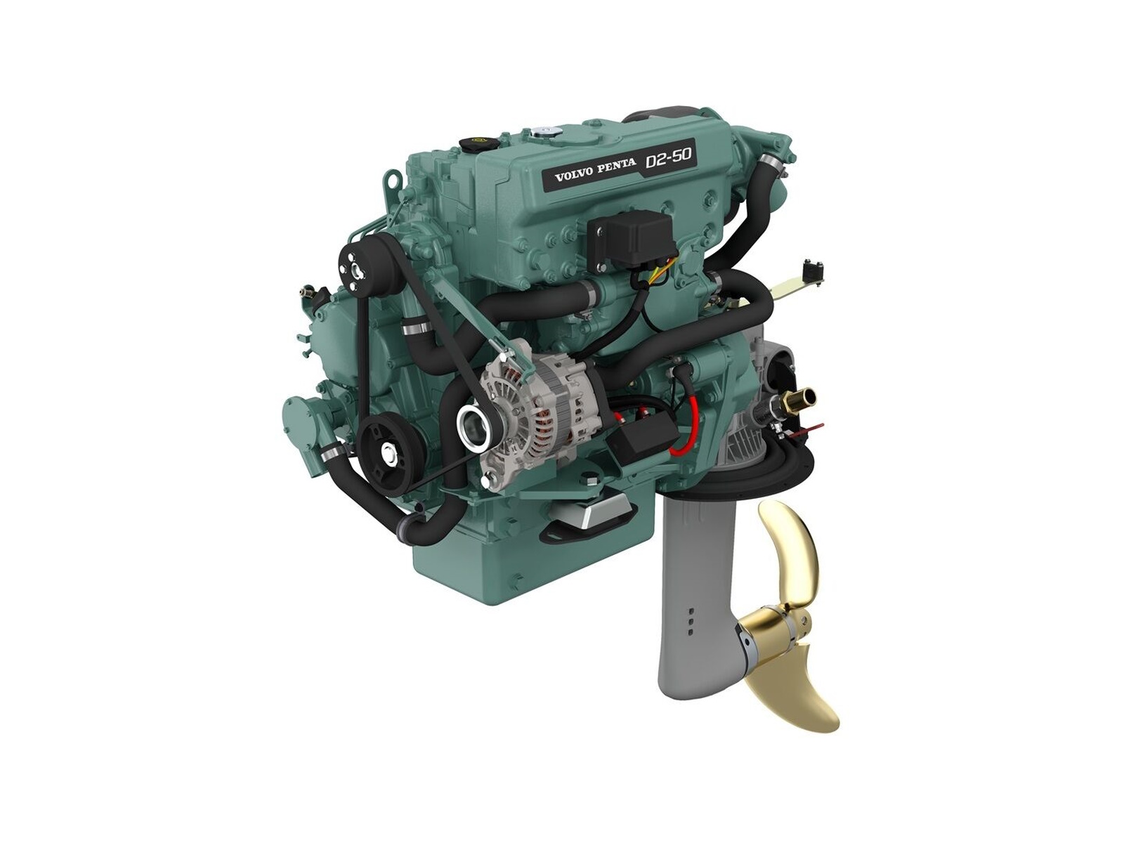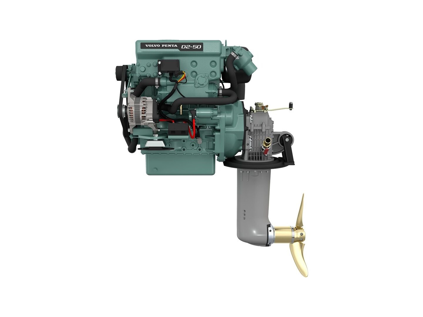 The Volvo Penta D2 Saildrive is an integrated package. It is paired with the in-line 4-cylinder, 2.2-liter, charge air-cooled diesel engine using a cam-driven, in-line injection pump and freshwater cooling. Together, the package operates at low cruising rpm, providing quiet operation and reduced vibrations.