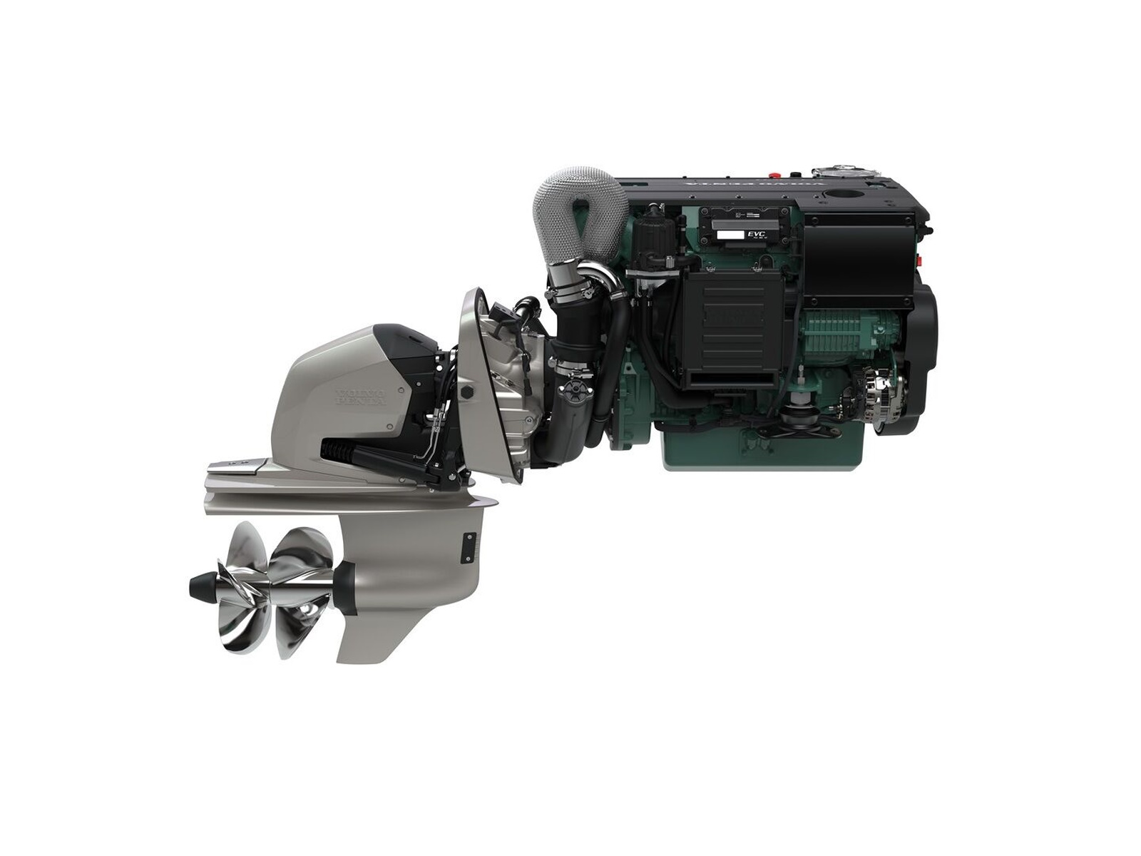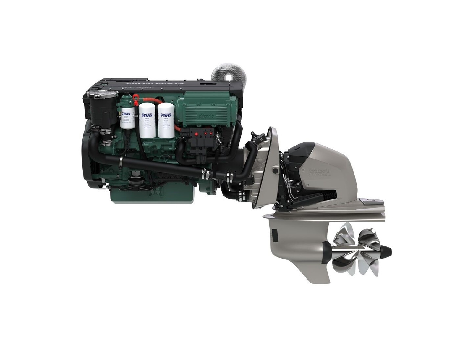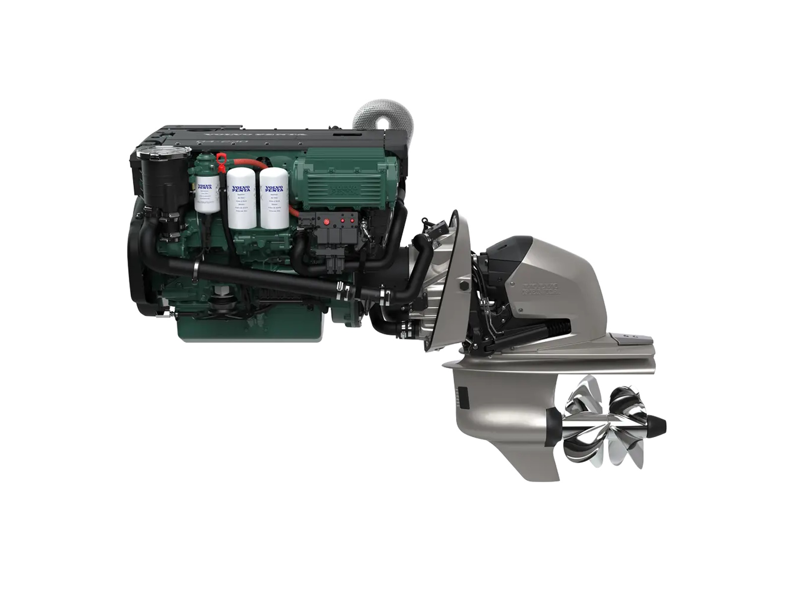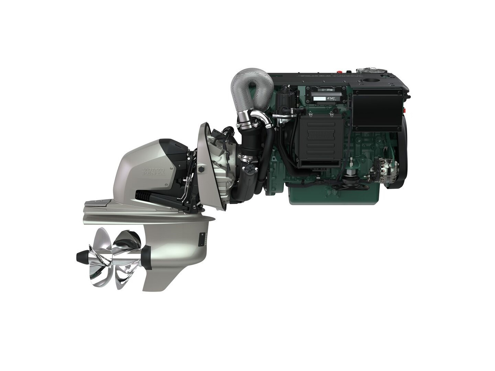 Volvo Penta Aquamatic Sterndrive D4-DPI is an integrated package, powered by the in-line 4-cylinder, 3.7-liter, common-rail diesel engine with double overhead camshafts and turbo. Working together with the optimized DPI DuoProp drive, the package delivers strong diesel performance along with reduced emissions.