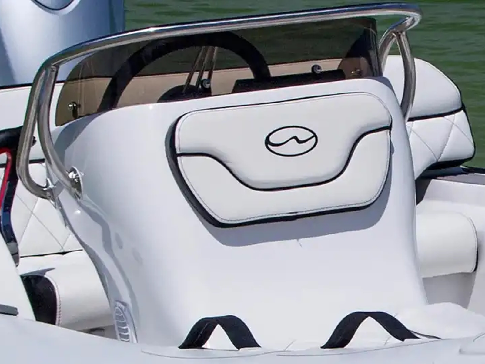 As the Generation 450 DLX propels forward, the concave chines deflect the water down, reducing spray and increasing hull traction for aggressive maneuvering. The stern of the hull, meanwhile, flattens out to facilitate planing at low speeds. Above the water, the sloping design of the bow step pushes the boat down at the front while the downward curve of the stern lifts the tail to increase stability and handling.