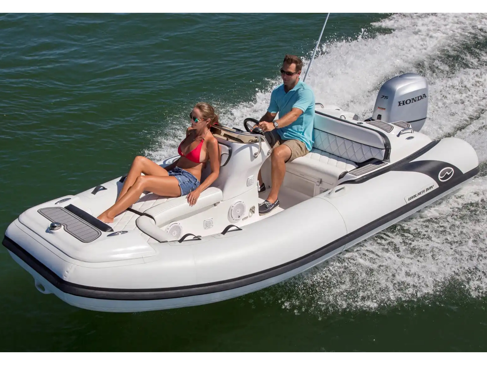 The Generation 450 DLX is built using Walker Bay’s proprietary Polyurethane Composite Micro Stringer system making the hull lighter and stronger. The Generations also have a unique approach to joining the hull and deck using a unidirectional glass and polyurethane grid bonding system that eliminates the air cavity found in other RIBs. The result is a stronger hull that better absorbs wave chop, and its lighter weight gives a faster top speed and makes it quick to plane.