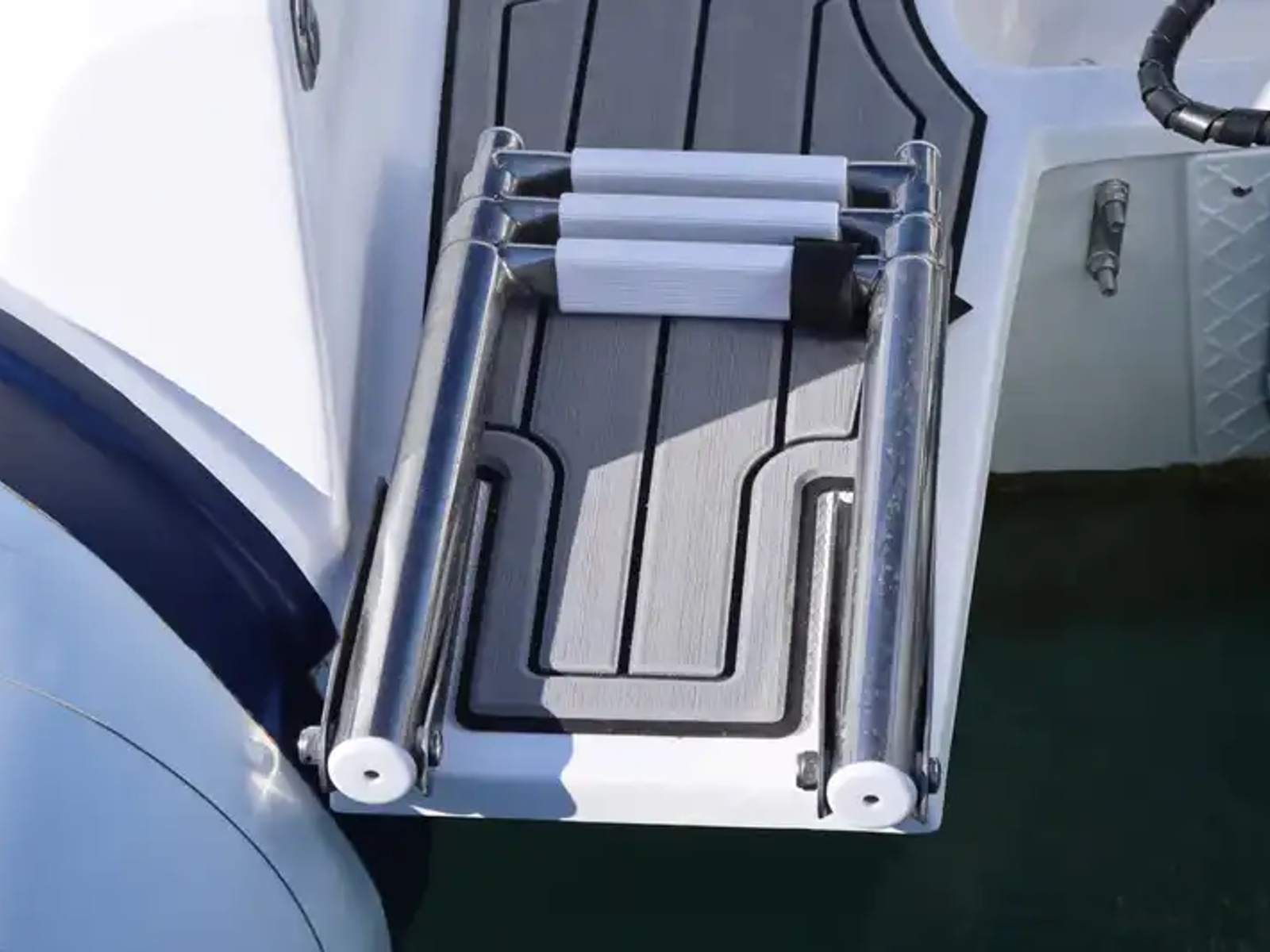 - Real practical boarding steps aft, port, starboard and in the bow.