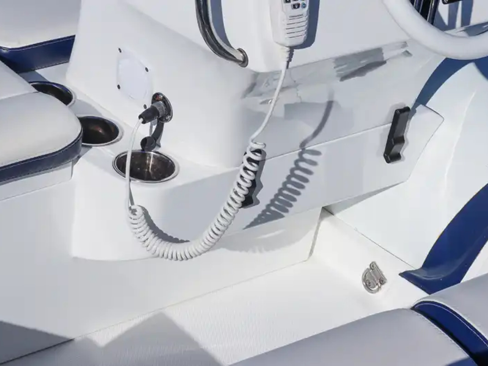 - Console dash accommodates an extra-large 12” chartplotter or 2 x 9” screens side by side, gauges, stereo and VHF.